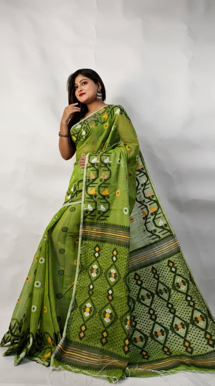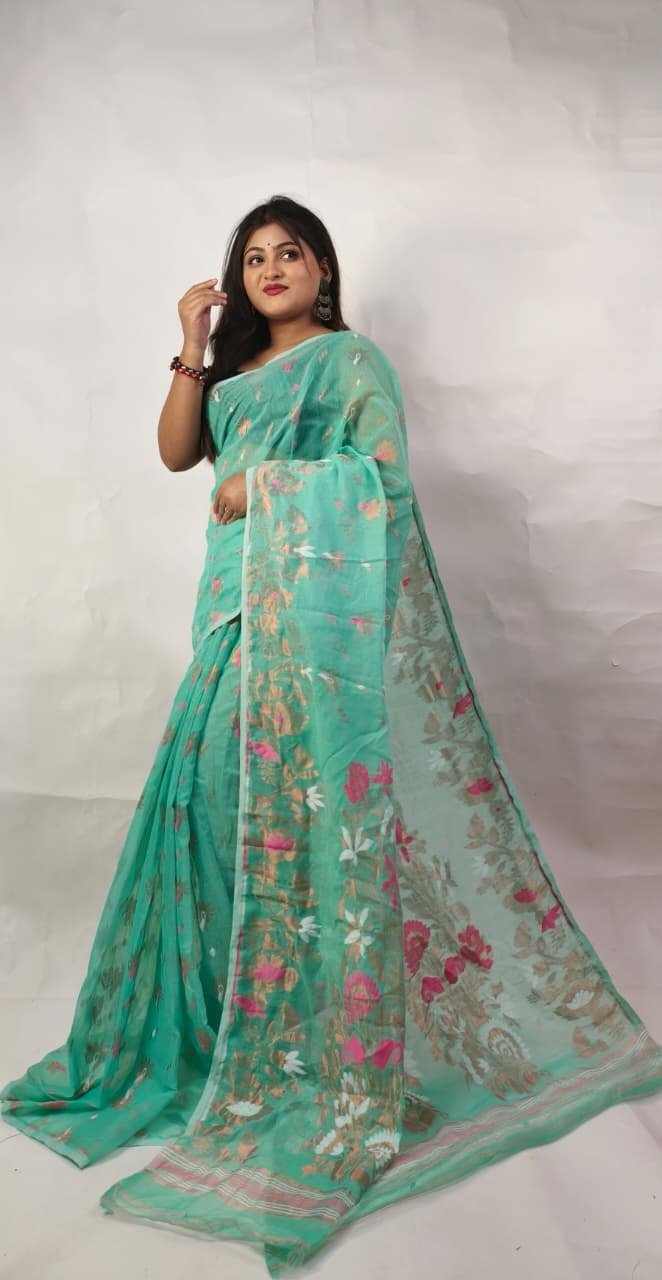 New Exclushive Mini-Gap Thoka ful Jamdani Saree With B.P.