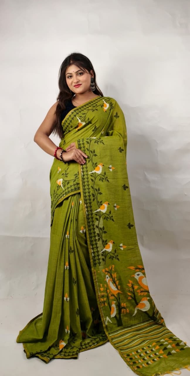 New Khadi Pakhi & Lota Buti Design Saree With B.P.